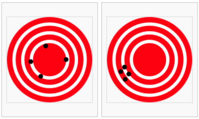 군대를 다녀온 분이라면 바로 떠오르겠지만, 이런 경우 영점만 잘 조절하면 1번처럼 accuracy 또한 올라갈 상황인 것이다.