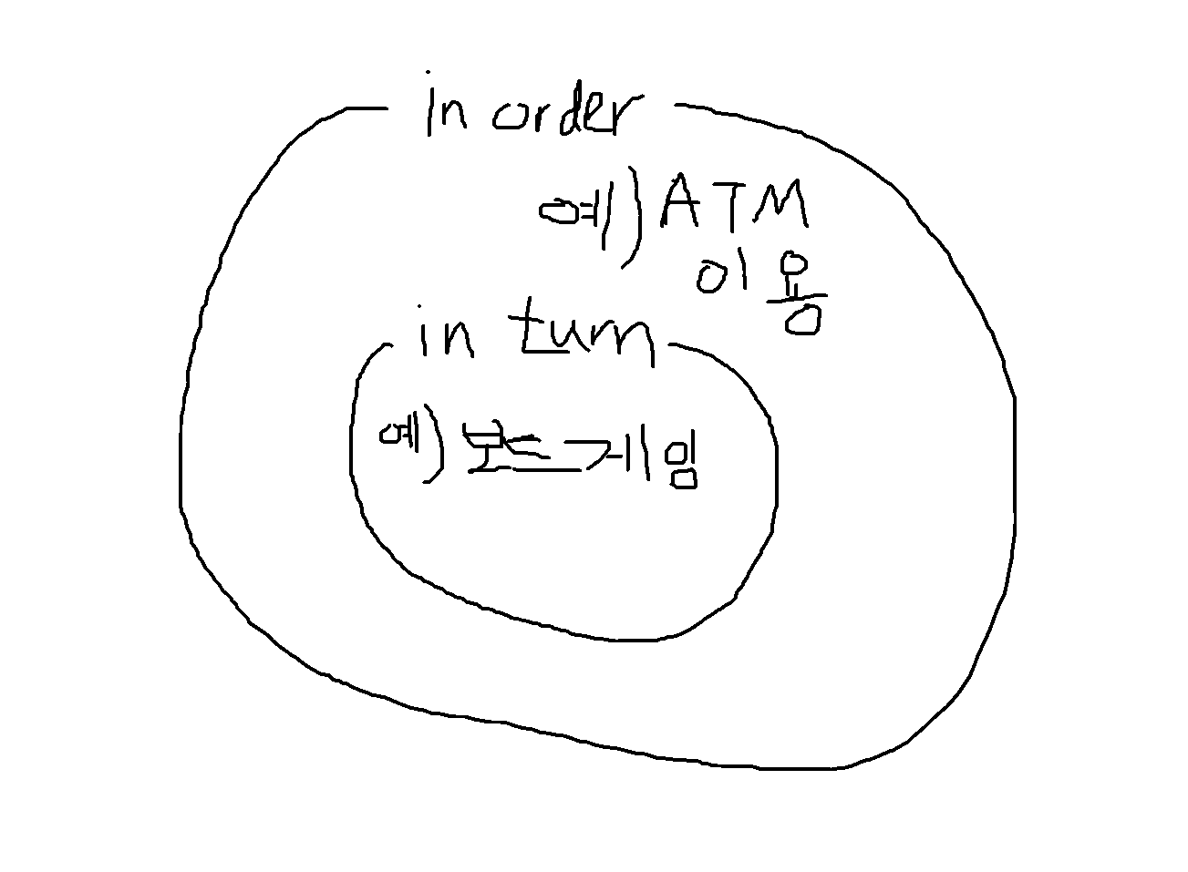 한편으로는, 어떤 것을 'in order'로 한다고 그것이 무조건 'in turn'인 것은 아니라는 것을 알 수 있겠다.