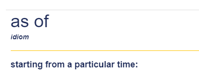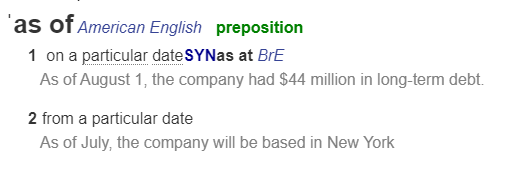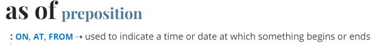 (=꽤 많은 사전이 'as of'가 실제로 쓰이는 의미 모두를 담지 못하고 있다.)