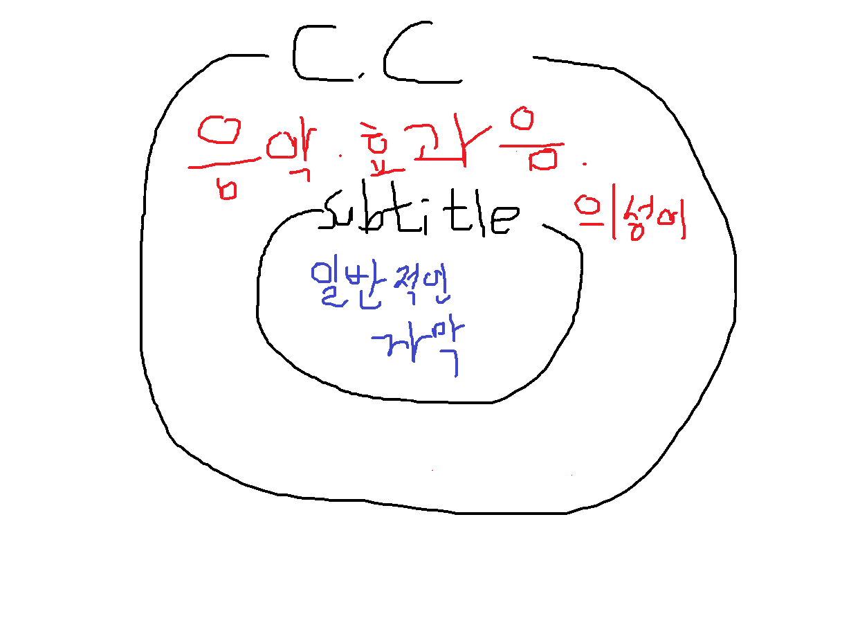 즉, CC가 subtitle보다 더 넓은 범위의 개념이라고 보면 되겠다.
